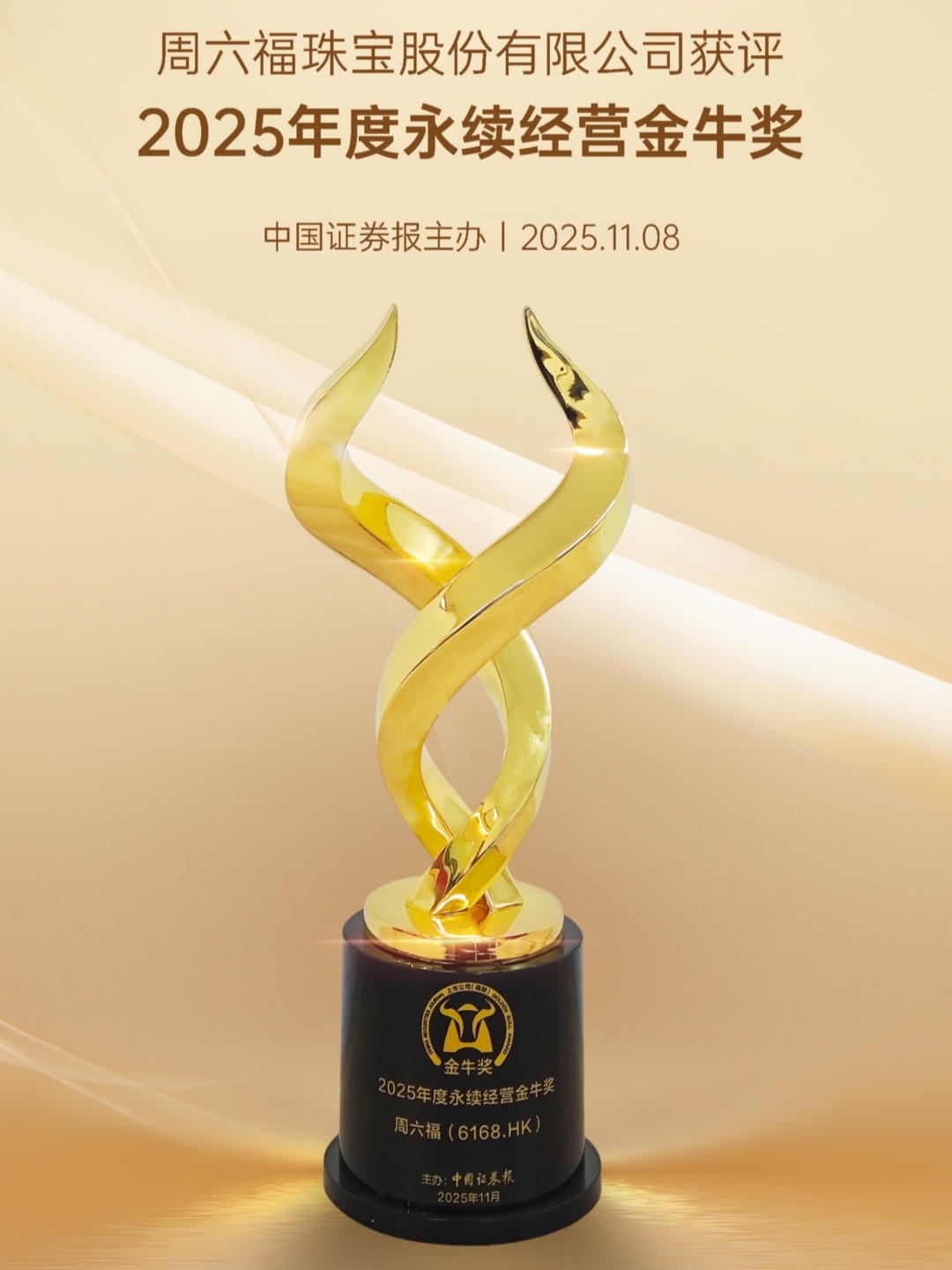 荣誉速报丨周六福荣获上市公司(港股)金牛奖!